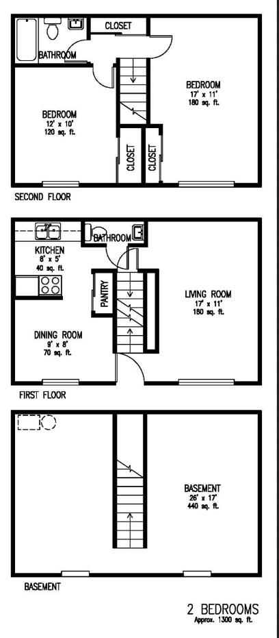 Spacious 2 bedroom townhouse with full unfinished basement and washer/dryer hook up.